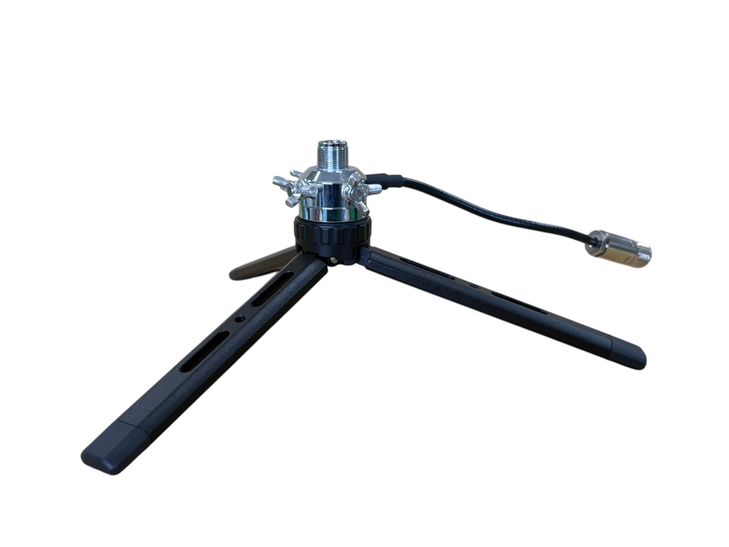 It attaches easily to commercially available camera tripods with a thumbscrew.