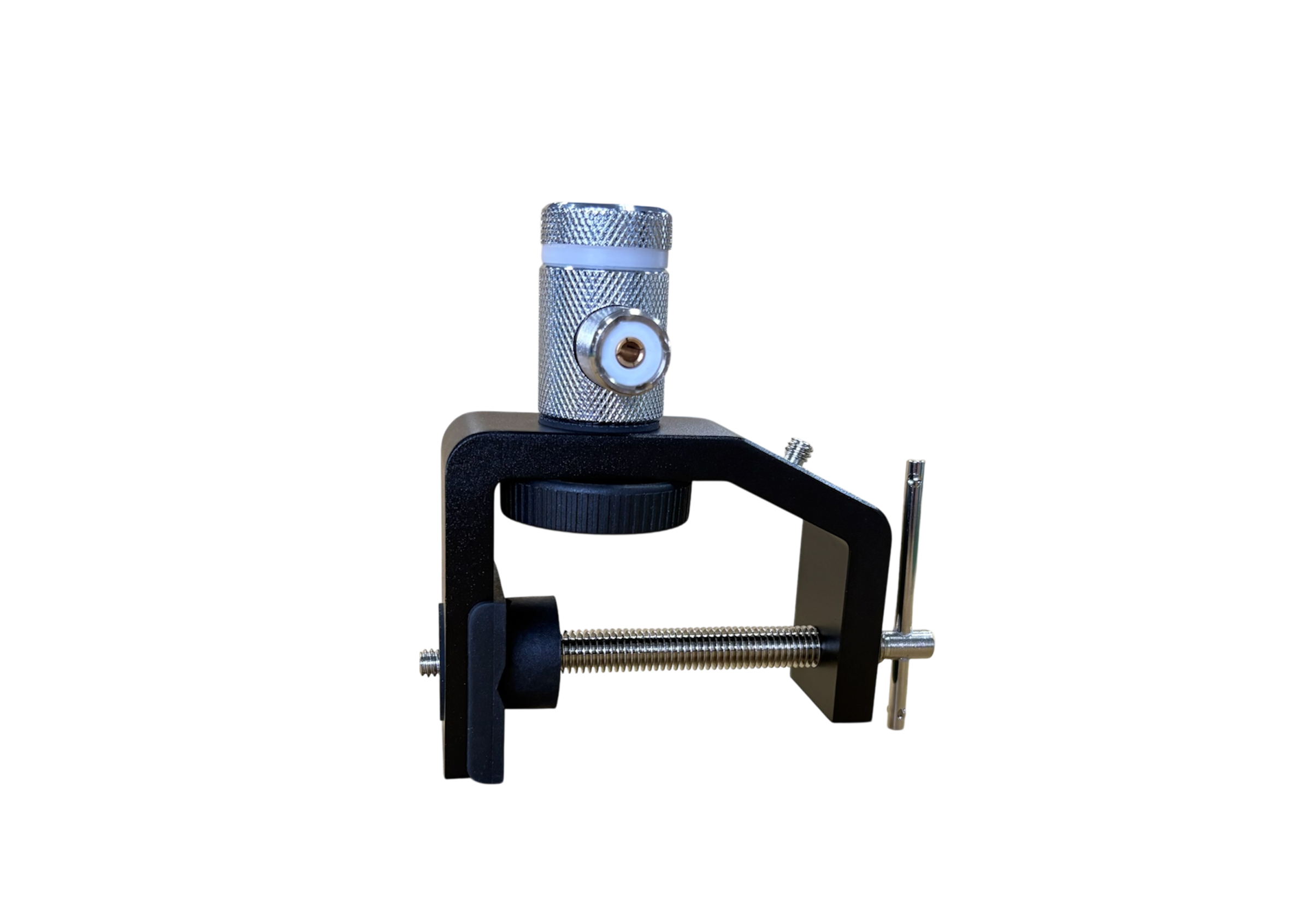 The GH-60A is a versatile aluminum alloy mounting clamp designed for radio antennas and accessories. Its key feature is the three 1/4” threaded connection points at different angles (90° top, 180° side, and 120° slant), allowing flexible installation of DA-35D, TRS-3, and other 1/4” base accessories. The slant mount (120°) is especially useful for railings, window frames, or tight spaces, enabling outward installation where vertical or side mounting is limited.